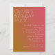 This birthday party invitation features a vibrant, heat wave-inspired background with warm colours blending from golden orange to fiery red, capturing the essence of a hot summer day. The bold, modern font stands out in large letters, ensuring the event details pop against the shimmering, wave-like gradient. Minimalistic accents like a martini glass or citrus slices add a fun touch without overpowering the design, giving it a lively, summer vibe perfect for a festive evening.