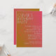 This birthday party invitation features a vibrant, heat wave-inspired background with warm colours blending from golden orange to fiery red, capturing the essence of a hot summer day. The bold, modern font stands out in large letters, ensuring the event details pop against the shimmering, wave-like gradient. Minimalistic accents like a martini glass or citrus slices add a fun touch without overpowering the design, giving it a lively, summer vibe perfect for a festive evening.