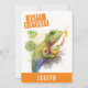 A cute watercolor birthday card featuring a chameleon celebrating summer on the front with "Happy Birthday" in a white, all-caps bold font. Personalise the front by adding your name(s). The back of the card features space for your typed or handwritten message.