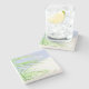The coasters are gorgeous, a quality feel and heavy weight. They look like a precious archeological find. A rustic stone juxtaposed with a modern floral black and white print. I like the way the print goes slightly imperfect on the cut stone edges giving them a kind-of natural beauty.