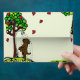 Cute Chocolate Labrador Cartoon Envelopes with Summer feelings. Unique and funny Labrador Retriever Cartoon created by Naomi Ochiai from Japan. An adorable Chocolate Lab Puppy is having a shower in the yard!! Whimsical red hearts flying around his/her favourite green tree. White daisies are blooming. Great fun gifts for dog lovers who own Chocolate Labradors.