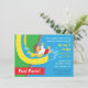 Planning for kids who have birthdays in the summer? A colourful pool party theme is perfect to chill out in the heat and have a fun time. Make a splash with guests with this colourful and bright water slide pool party birthday invitation. The invitation has a cute boy in a white tee and red shorts sliding happily down a giant yellow water slide, ready to make a big splash! Perfect for anyone who has a backyard pool and inflatable water slides or if holding the event at a water theme park. Personalise easily with your party details.