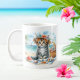 Summer Watercolor Kitten on the beach Coffee Mug