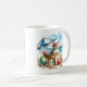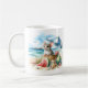 Summer vibes mug featuring a watercolor mouse with fruits on the beach. Customisable.