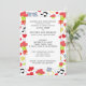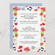 Whimsical casual wedding invitations featuring summer lovebirds, red roses, musical notes and hearts.