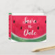 Summer wedding Save the Date postcards with watermelon graphics and changeable text on the back side of the postcard (you can add Bride's and Groom's name and wedding date)