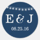 Summer Wedding String Lights Blue Classic Round Sticker