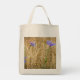 Rustic style throw pillow featuring a photo of wheat field with beautiful cornflowers (bachelor's button). Wheat symbolises prosperity, birth and hope. Cornflower is associated with wealth and good fortune.