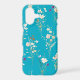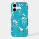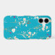 An abstract design featuring delicate summer wildflower bouquets set against a striking aqua blue background.