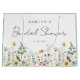 This design features a watercolor border of wildflowers in shades of gold, red, blue, and green. Perfect for spring and summer bridal showers.