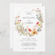 This elegant design features a delicate wreath of rustic watercolor wildflowers. Perfect for whimsical spring and summer weddings.