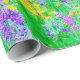 Wrapping paper in a pastel chalk sketch pattern of scattered, summer wildflowers, in a field of green meadow grasses