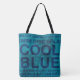 Navy and teal colorway. Words that mean summer: Tropical Breezes, Cool Blue and Tequila Sunrise combined with images of Monstera Leaves, Palm Trees, Hibiscus and create this graphic design. This design comes in three different colorway/designs. The beach bags are reversible.
