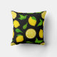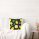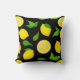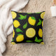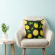 Beautiful thrown pillow with a citrus pattern featuring handpainted lemons with green leaves on a black background. It will instantly brighten your home. Original design by Cute Muse Design.