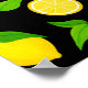 Summer Yellow Lemons with Green Leaves on Black Poster