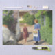 This design features a painting by the Danish artist Hans Andersen Brendekilde (1857–1942). It shows a mother, or older girl, together with a young girl on a traditional village street in Denmark. The girl and the woman are wearing long flowing dresses. The woman is holding a basket and she has clogs on her feet, while the girl is barefoot. The houses are built in a style of traditional architecture with thatched roofs. There are lilac flowers blooming towards the left of the image. The scene is set in the Danish town of Jyllinge, which is located on the eastern shores of Roskilde Fjord. Jyllinge developed around a small original fishing village. The original artwork was painted by Hans Andersen Brendekilde in 1922.