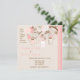 This beautiful invitation is sure to be noticed by all of your guests and is perfect for setting the tone for your country or rustic wedding. Featuring a beautiful flowering tree branch with shades of pale pink, white, cream, and pink, three Mason jars hanging along with 3 little heart shaped wind chimes, and finished off with 2 little whimsical birds. One side of the invitation is bordered with matching pink with a cream lace overlay. Then customise to your hearts desire with the text of your choice front and back.
