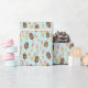 This wrapping paper features a repeat pattern of hand-painted watercolor popsicles in soft pastel tones. The design includes two distinct frozen treats: a classic chocolate-covered popsicle with a bite taken out of some and a two-toned popsicle in pink and yellow. The popsicles are arranged in a scattered layout against a light mint green background, creating a fun, nostalgic, and summery feel.