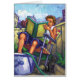 Summertime Reading Art features our original art of a boy and a girl reading in a city back yard with their feet in a cold tub of water with a cat and dog sitting nearby. A perfect gift for anyone who loves reading and books and colourful art.