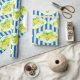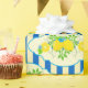 Summery Blue Stripes & Lemons and Leaves Pattern Wrapping Paper