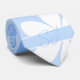 Pretty summery design with large white and blue flowers in a pattern against a pale sky blue colour. There is custom text for a initials in a stylish script font.