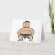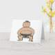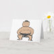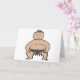A large sumo wrestler stands in squat position facing opponent. Wears mawashi with strings and hair in a tight bun. Sumo fun for followers of this Japanese sport or people who are a little on the large size.
