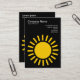 A business card template with a Sun symbol. Company name, business type and address on the front with name, job title, telephony, web and email addresses on the back, with the same layout.