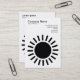 A business card template with a Sun symbol. Company name, business type and address on the front with name, job title, telephony, web and email addresses on the back, with the same layout.