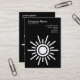 A business card template with a Sun symbol. Company name, business type and address on the front with name, job title, telephony, web and email addresses on the back, with the same layout.