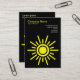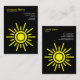 A business card template with a Sun symbol. Company name, business type and address on the front with name, job title, telephony, web and email addresses on the back, with the same layout.