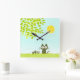 Sun and Leaves and Black Cat Square Wall Clock