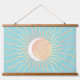 Transform your surroundings with the captivating beauty of this pink and golden sun and white moon and stars design, featuring soft pastel shades of pink, gold and white.
