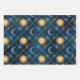 Sun and Moon Pattern on Blue Wrapping Paper Sheet