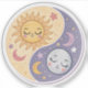 The sun side glows with gentle rays, rosy cheeks, and cosy warmth, while the moon half radiates serenity with sleepy eyes, subtle stars, and a soothing twilight hue. The pastel colour palette—blending light yellows, baby blues, soft purples, and creamy whites—creates a peaceful, whimsical feel perfect for daily inspiration.