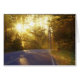 Sun bursts through the forest onto roadway at