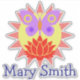 A colourful representation of the sun, butterfly and flower as seen through the eyes of a nature-lover. Customisable words such as names and slogans.