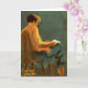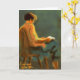 A fully clothed figure study. A woman with short hair comfortably sits on a wooden chair while reading a book. The sun is shining on her face while she is turned mostly away from view.