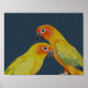 Colourful pair of sweet sun conures parrot bird poster. Animal photography by Susan.