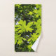 Add a touch of nature and spring to the bathroom with this towel set, which features the sun-dappled leaves of an old-growth forest.