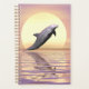 Cheerful planner with my image of a dolphin leaping out of the water with a big yellow sun setting behind him.