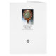 This greeting card depicts a representation of The Sun God in stoneware clay, porcelain and glass.