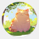 Bask in the sunlight like this peaceful orange tabby cat. A lovely sticker to bring calm and warmth wherever you place it.