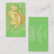 A happy, yellow tabby cat rolling around on the grass in the sunshine. Business card template with a yellow, orange, green, white and blue customisable design for you to personalise with your own text, pictures and ideas. Image created from an original coloured pencil drawing.