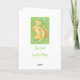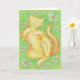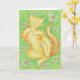 A happy, yellow tabby cat rolling around on the grass in the sunshine. Greetings card with a yellow, orange, green, white and blue customisable design for you to personalise with your own text, pictures and ideas. An original coloured pencil drawing by Jess Perry.