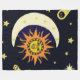 This colourful fleece blanket shows the sun and the moon, yellow stars, comets, asteroids and galaxies, against a midnight blue background. A lovely unusual accessory for the bedroom.