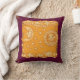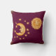 Sun Moon and Stars in dark gold on a maroon distressed background- This design is funky and fun - playful yet sophisticated - the back of the pillow is slightly different than the front giving you two ways to showcase your pillow.