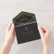 Elegant and vintage wedding all-in-one invite inspired by a tarot card in black and gold featuring a design of a sun, moon, stars, and clouds, and your very own QR code. PLEASE NOTE the gold featured in this design is NOT real foil and is printed in flat colours. Matching Items in our shop for a complete party theme.