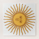 This design contains the Sol de Mayo (Sun of May) that is featured in the centre of the national flag of Argentina. The sun appeared for the first time in the version of the flag released in 1818. According to some historians, the Sun of May represents Inti, the Incan god of the sun. The Sun of May is also linked to Sol Invictus ("The Unconquered Sun"), a Roman god that was identified with the Sun and was the main solar deity in the ancient Roman religion.