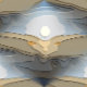 An abstract art design of the sun over the hills of Wales.