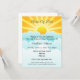 Sun Rays and Clouds New Beginning Graduation Party. Features a bright sun with white sun rays on a gold backgroud, is rising out of the sky with layers of blue, light blue and white clouds below. A modern sunrise design. Symbolises a happy day, celebration, and a new beginning which is perfect for any new graduate. Just fill in your information as needed. An extra line is provided for any info.